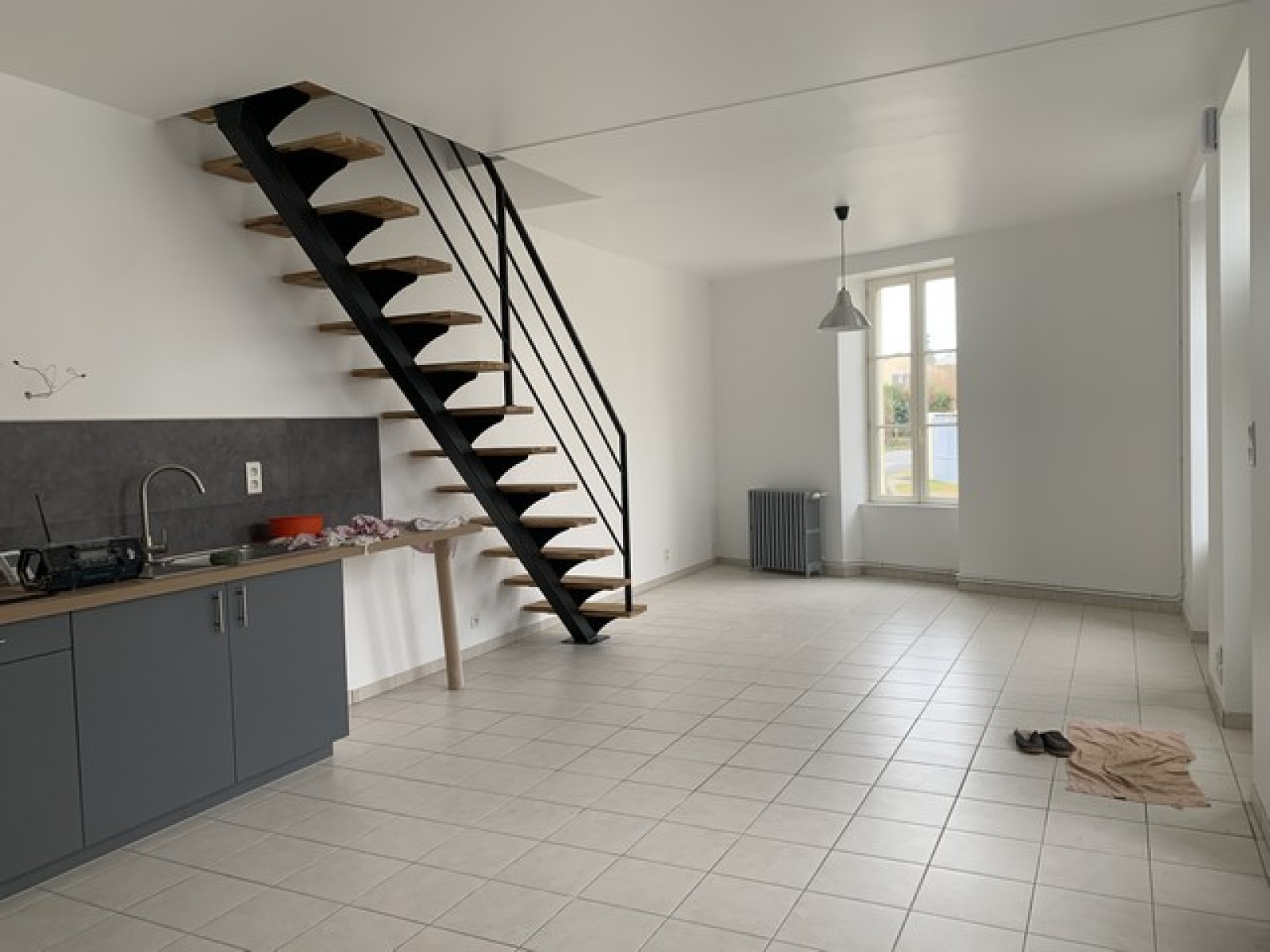 Cette maison située en plein de centre de Coulonges-sur-l'autize se compose au rez-de-chaussée d'une pièce de vie avec un coin cuisine, un cellier, des toilettes et une réserve.