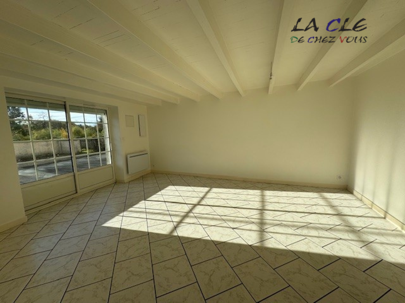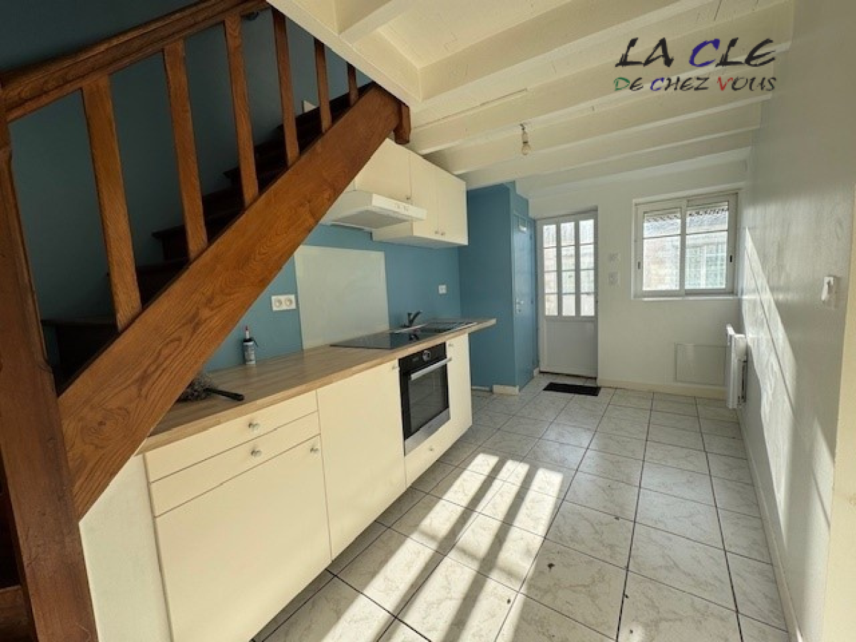 Cette maison lumineuse est composée au rez-de-chaussée d'une cuisine équipée et d'un séjour.