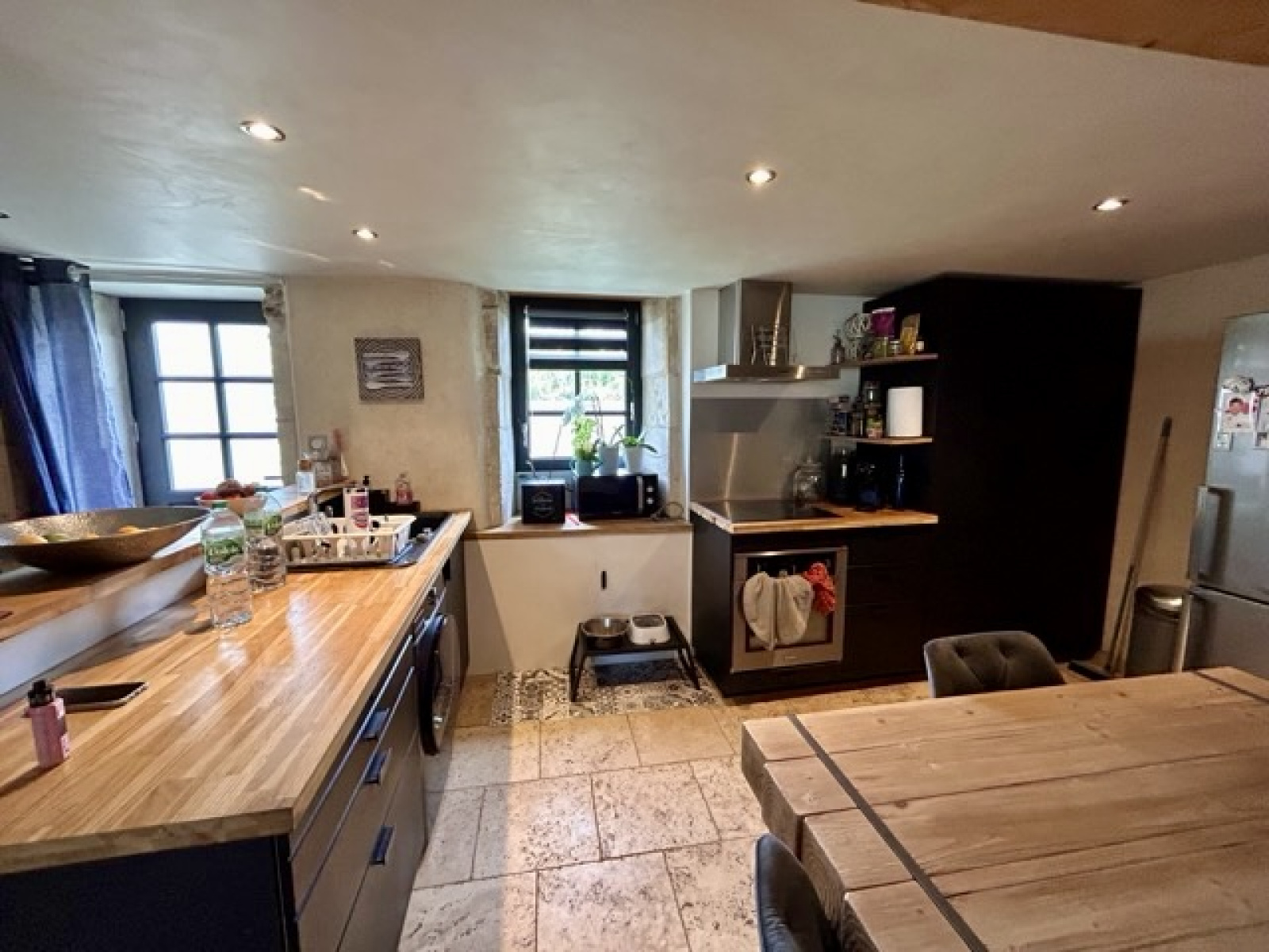 Charmante maison ancienne composée d’une grande pièce de vie avec cuisine équipée, 2 chambres, une salle de bains et des toilettes.
