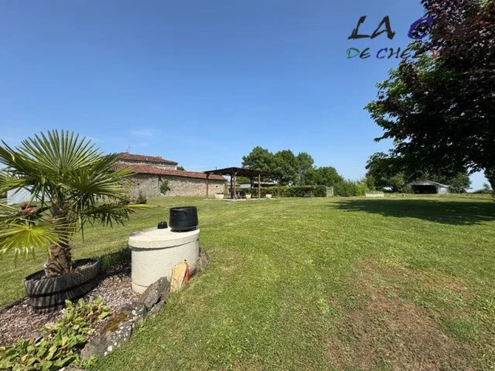 Sur un beau terrain arboré de 4170 m² avec un puits.