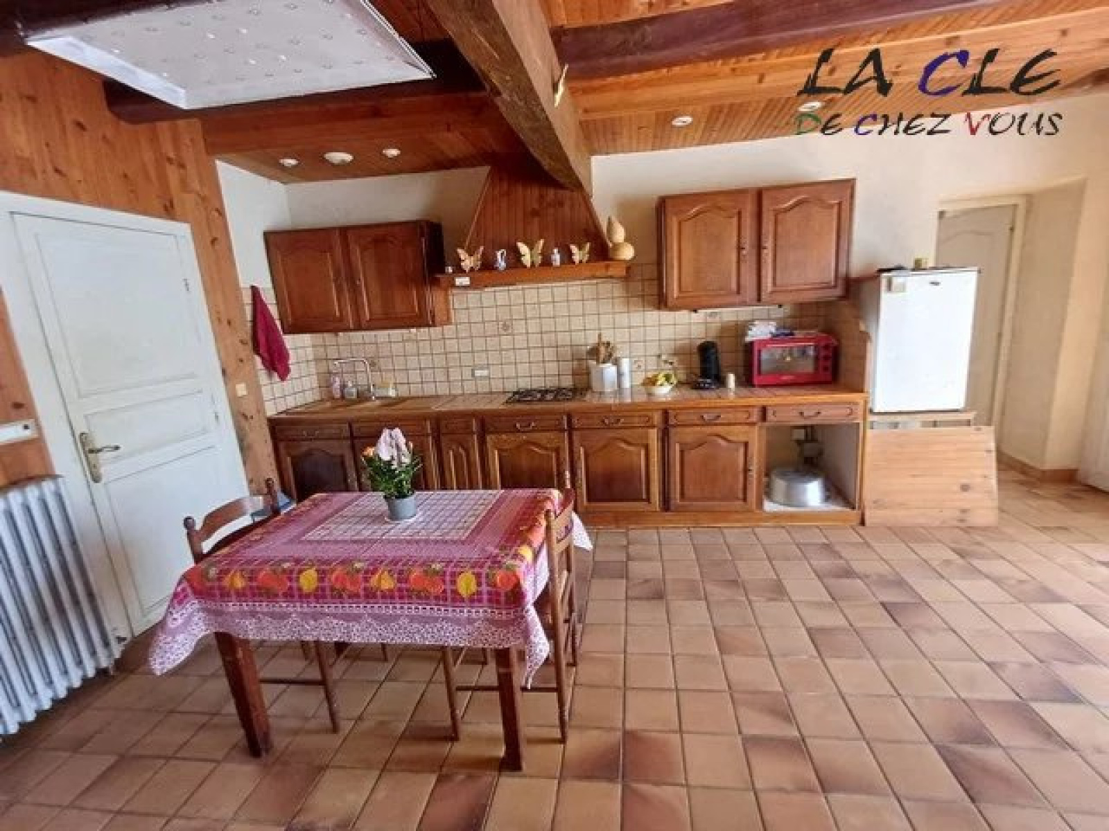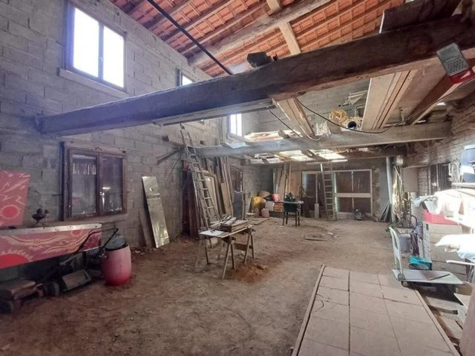 Cette maison ancienne se compose d'une entrée, une grande cuisine de 29 m² avec une cheminée et un four à pain, une grande pièce de 72 m² à aménager, 5 chambres dont une avec salle d'eau, un dressing, un bureau, une salle d'eau indépendante et des toilettes. Un garage, une chaufferie, un préau, divers toits et un grenier aménageable. Sur un terrain clos et arboré de 1773 m².