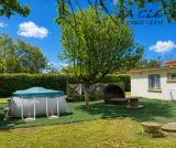 Cette jolie maison offrant confort et tranquillité se compose d'un séjour lumineux avec coin cuisine, une arrière cuisine, 2 chambres, 2 salles d'eau avec toilettes, une cave, une grande terrasse carrelée, un abri de jardin et un espace détente extérieur aménagé avec gazon synthétique et terrain de pétanque.