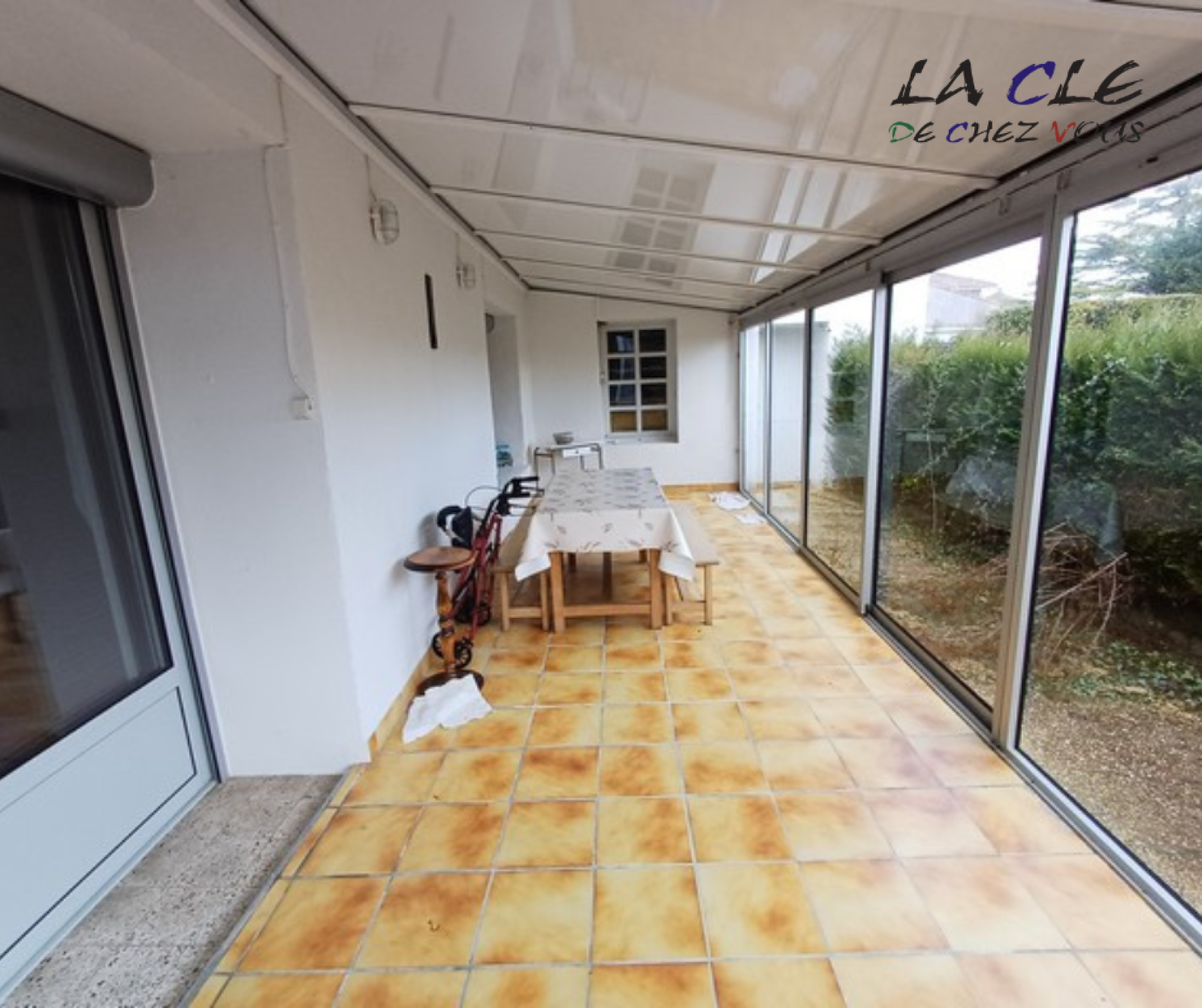 Cette lumineuse maison ancienne est composée au rez-de-chaussée d'une entrée, une cuisine, un séjour avec cheminée, une véranda, une chambre, une salle d'eau et des toilettes.