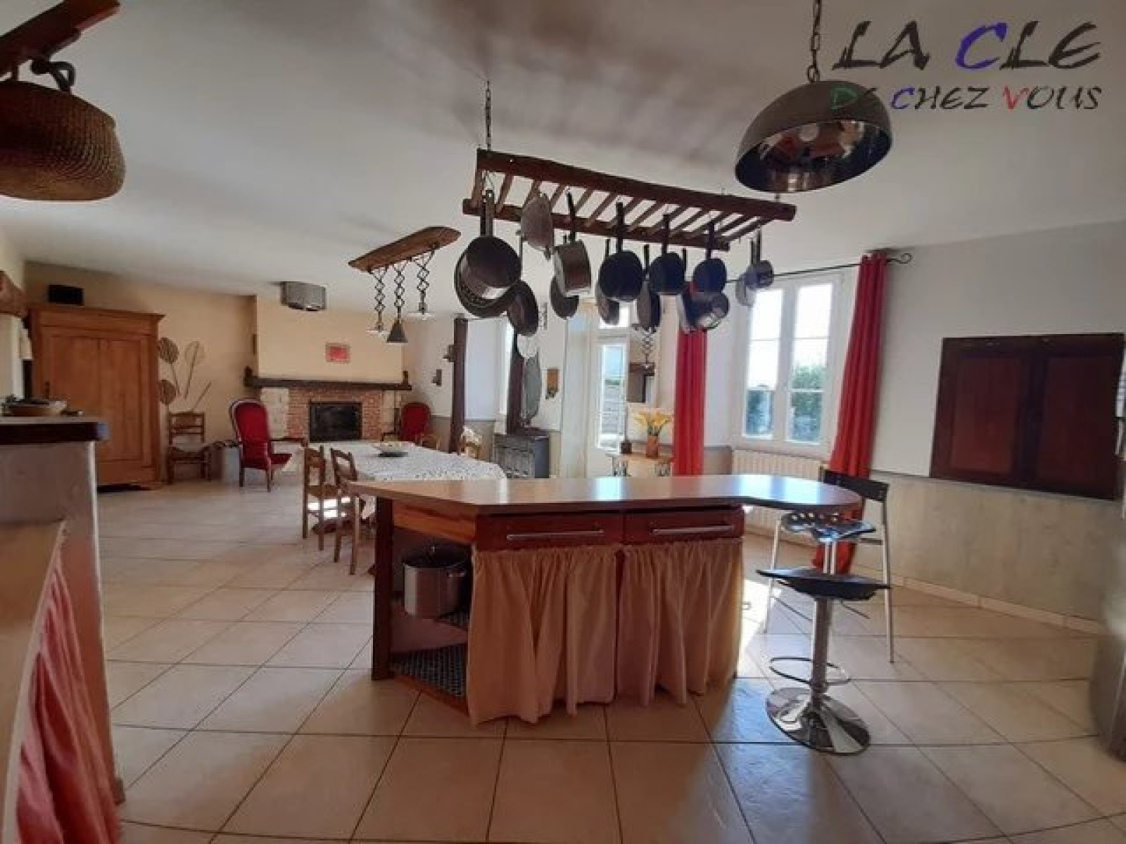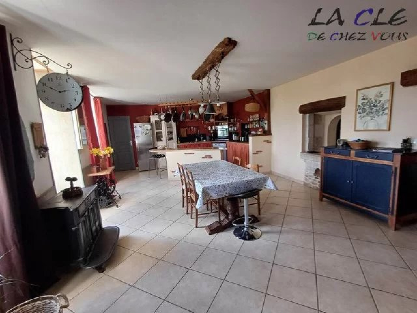 Cette maison rénovée de 204 m² se compose d'une cuisine équipée avec cheminée, un séjour, une mezzanine, une bibliothèque, 4 chambres dont 2 avec placards, une salle d'eau, des toilettes, une salle de bains avec toilettes, une buanderie, une chaufferie et un grenier aménageable. Un garage, une cave, un abri de jardin, un préau et une dépendance. Sur un beau terrain clos et arboré de 5758 m².