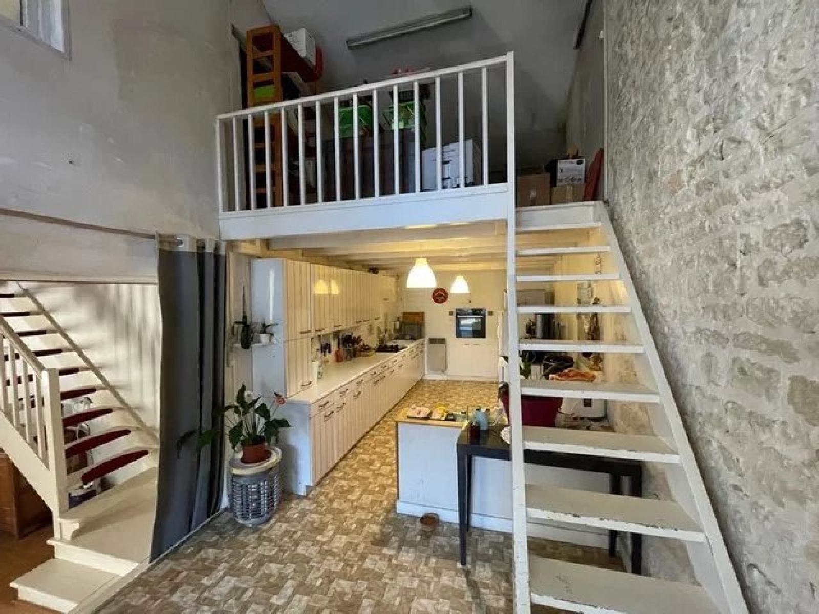 Cet immeuble, très bien situé dans le centre de BENET, se compose d'une maison d'habitation sur 2 niveaux avec cuisine aménagée, 2 salons, 3 chambres, une mezzanine, une salle de bains, 2 toilettes, une buanderie et un dressing. 2 locaux commerciaux de 28 m² (loué 366€/mois) et 40 m² (libre selon date à convenir). Un grand garage de 92 m². Sur un terrain clos de 711 m² comprenant une cour, une grande terrasse et un jardin arboré.
