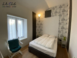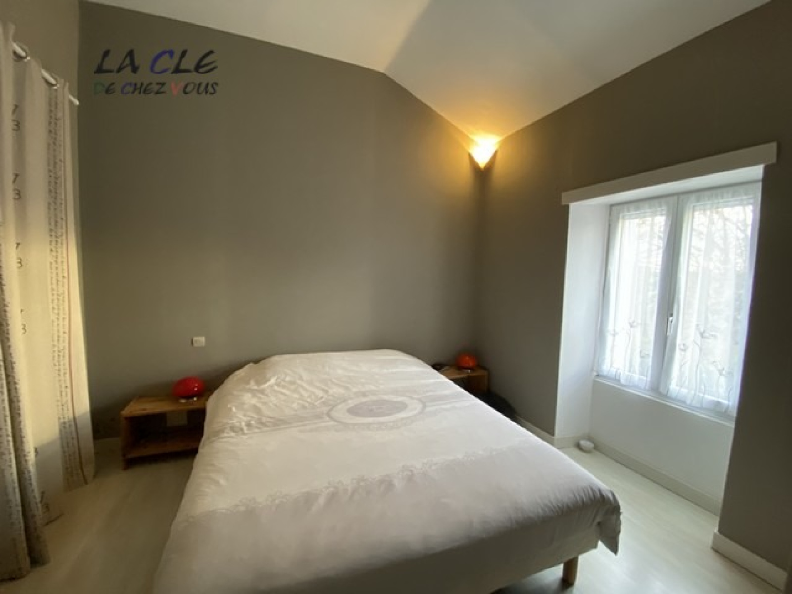 Un gîte d'environ 60 m² composé d'une pièce de vie avec cuisine équipée et poêle à granulés, une chambre, un cellier, une mezzanine, une salle d'eau et des toilettes. Une terrasse couverte et un jardin.