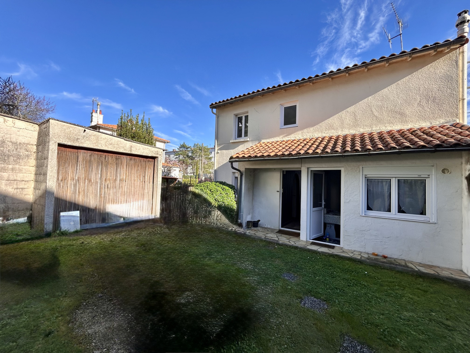 Maison de ville à étages rénovée, offrant un salon et un séjour lumineux, une cuisine, 3 chambres, un bureau, une salle d’eau et des toilettes.