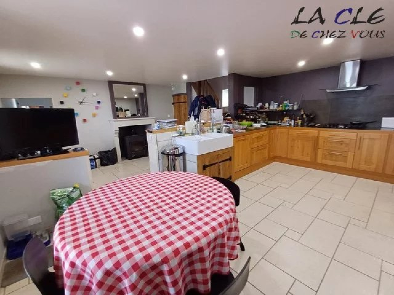 Cette belle maison rénovée se compose d'une grande cuisine équipée avec poêle à bois, un séjour avec poêle à bois, 4 chambres dont une avec dressing aménagé et possibilité de créer une cinquième chambre, 3 salles d'eau avec des toilettes, une buanderie et une cave.